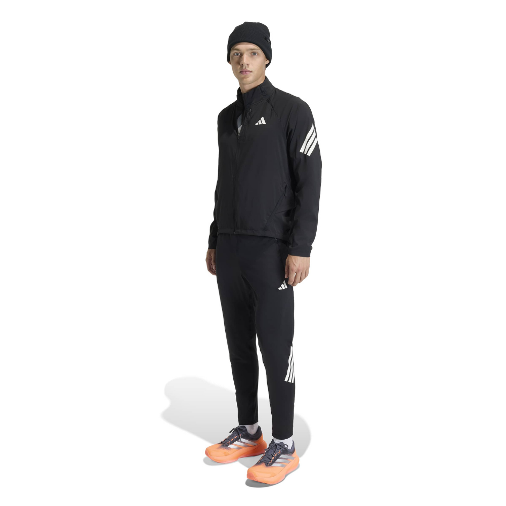 The Adi365 ForMotion Jacket is designed for runners who enjoy the thrill of running and the energy of community. Whether on the run or out, its regular fit and sophisticated design create a comfortable look. Reflective performance logos and diagonal 3-Stripes enhance visibility at night, embodying the iconic adidas aesthetic. Mesh inserts provide exceptional breathability to keep you cool while you run. A bungee cord at the hem allows for easy adjustments to create a custom fit. Practical details are also evident. A left chest zip pocket, two front zip pockets, and an internal phone pocket provide convenience for both everyday wear and running. A multi-layered back panel ensures breathability and comfort, while a key clip adds practicality.