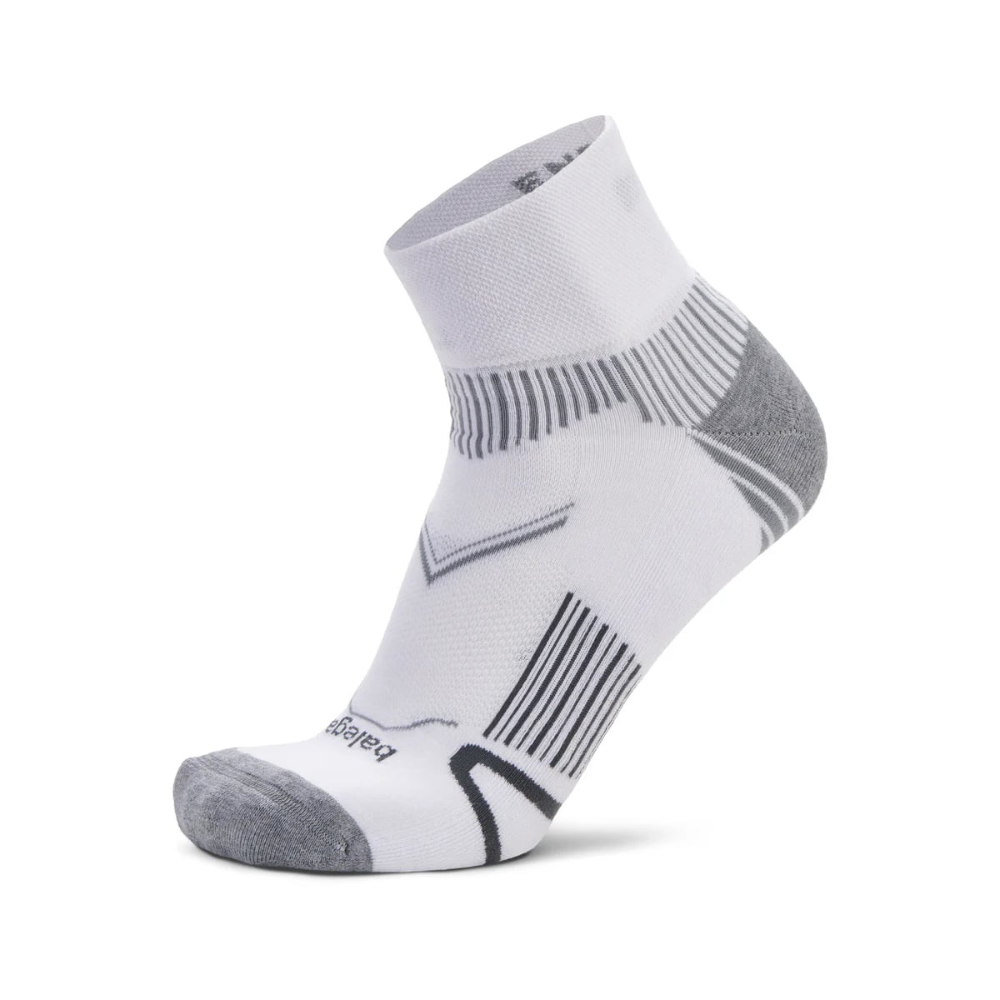 Move confidently, as all of Balega's running socks have been meticulously designed for quality performance without compromise. Seamless construction eliminates abrasion across the top of the foot while the extra deep heel pocket ensures that each sock fits the foot perfectly and does not slide down during a run. V-Tech Arch Support System adds structure along the arch of your foot for added support and a performance hit. This medium cushioning sock provides full-footbed comfort and impact resistance to help reduce foot fatigue. Available in No Show, Quarter, and Crew heights.