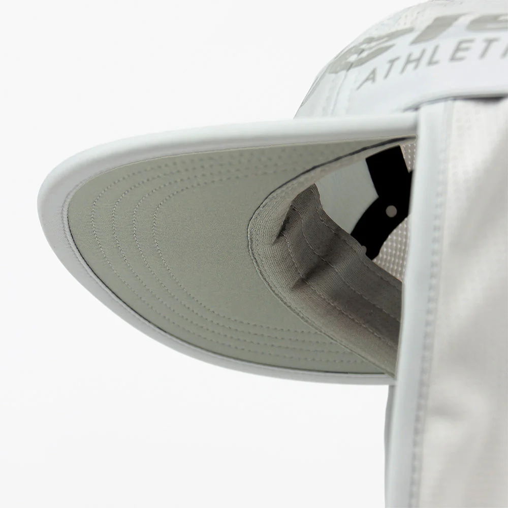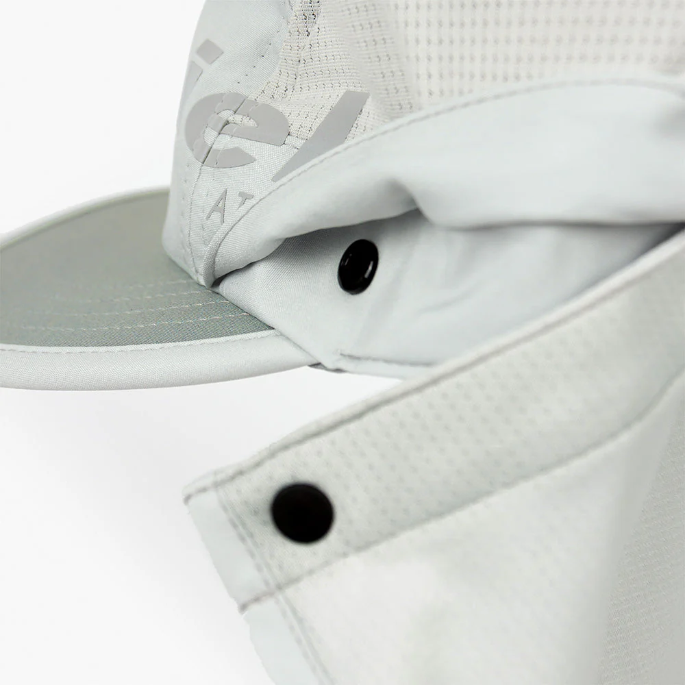 the removable neck protection, and its snap in, snap out convenience, makes the PYN the most versatile of caps for summer's intense conditions. night runs inevitably happen and our logo is reflective, just in case.